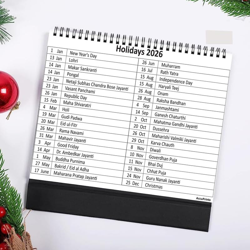 AccuPrints® 2026 -Size 5.8 by 8.2 inch Offices Desk Calendar Large Dates with Space for Marks/Notes-Blacl Color