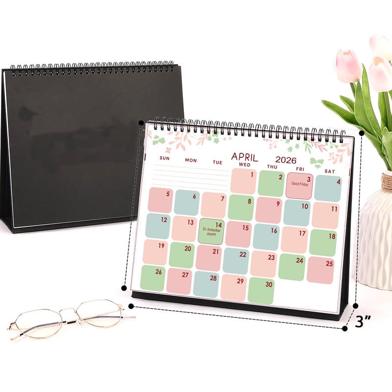 AccuPrints® Desk Calendar 2026 Planner-A5 Size (5.8 x 8.2) inch For Office Home Table New Year Hanging Kids (14 x 20.5) cm- (Flower Desk)