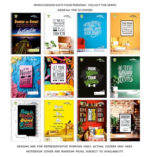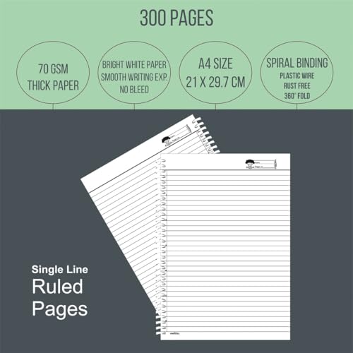 amblitz Spiral Notebook | 300 Pages | A4 Size | Single Line Ruled | Beautiful Covers with Motivational Quotes | Pack of 1 | School College Student Notemaking Notebook | 70 GSM Thick Paper