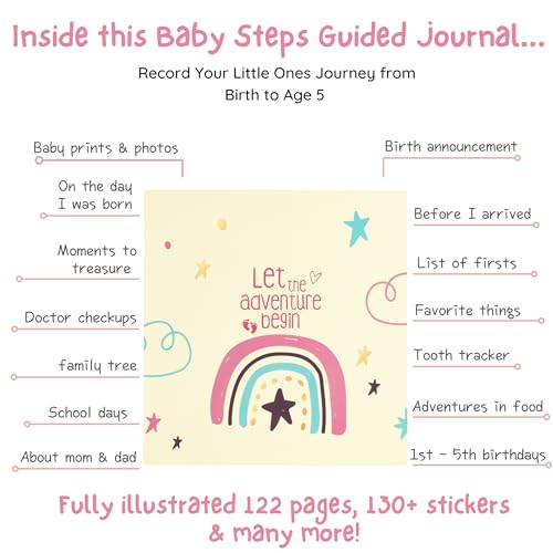 Doodle Baby Journal Set to Record Your Little One’s Journey from Birth to Age 5 | Record Baby’s Birth Story | Store Memories | Storage for photos and Documents (Growing Adventures)