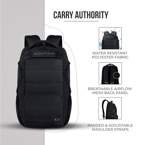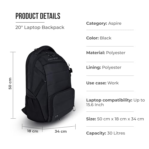 Gear Aspire 19”/30L Large Water Resistant Laptop Backpack | Casual Backpack | Daypack | Travel Backpack | College Bag For Men/Women (Black)