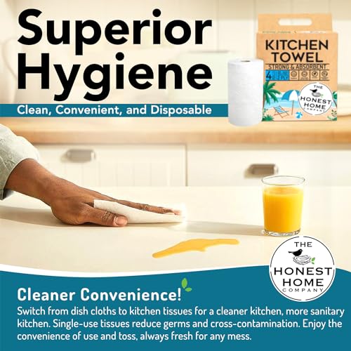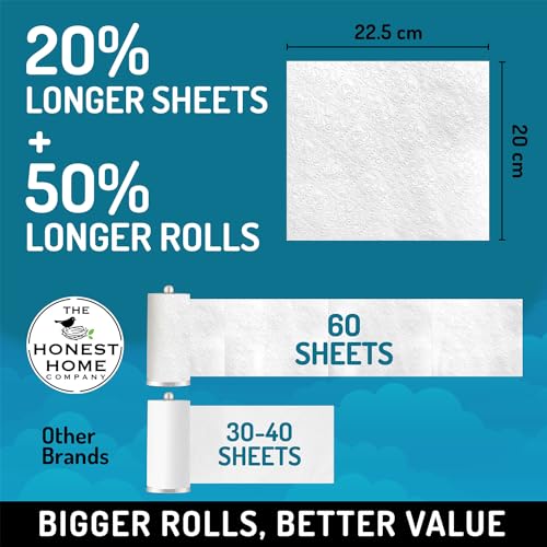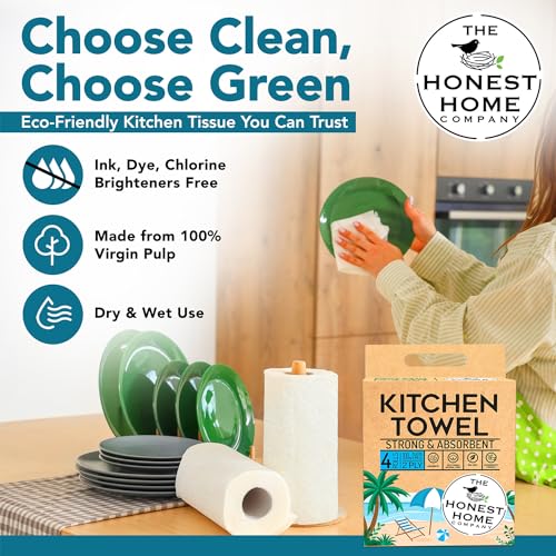 Honest Home 2 Ply Kitchen Towel Roll | 240 Pulls Total | 60 Pulls x 4 Rolls | Strong, Absorbent & Food Safe | 100% Virgin Pulp