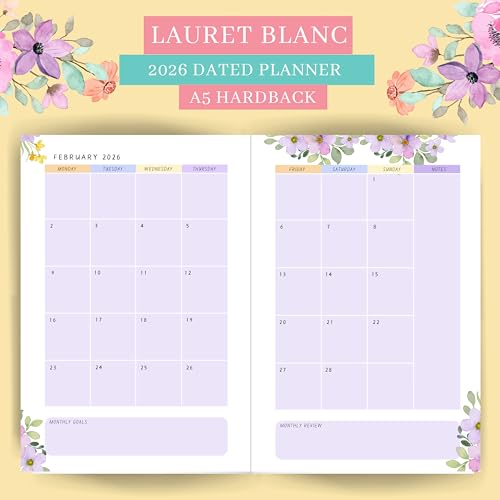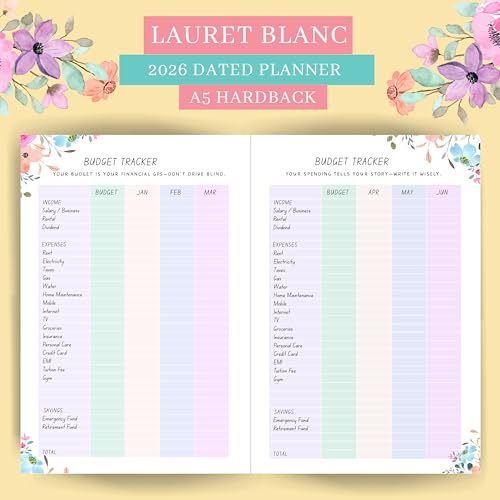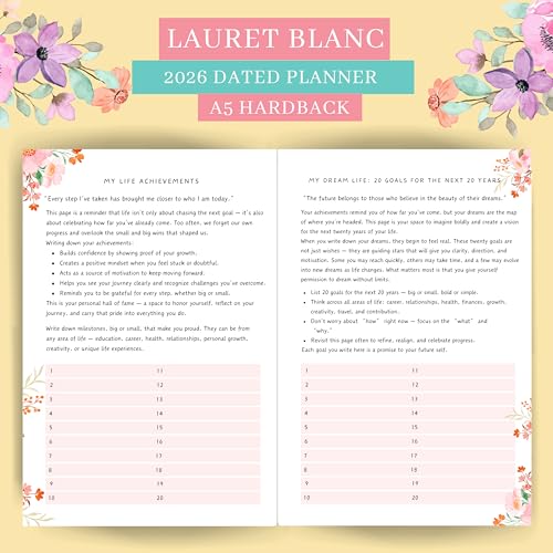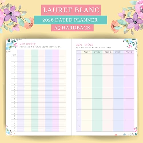 LAURET BLANC 2026 Life Planner Diary, Daily, Weekly, Monthly Organizer, Habit, Meal, Budget Tracker- 90GSM, Hardbound, Dated