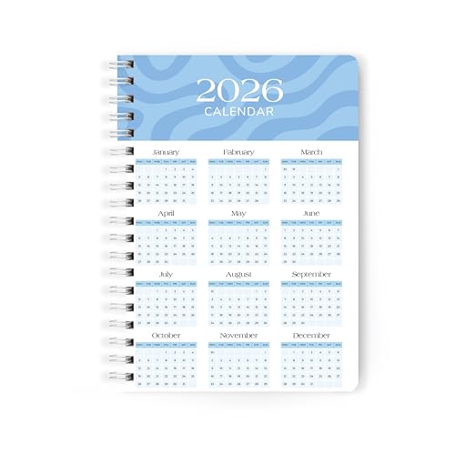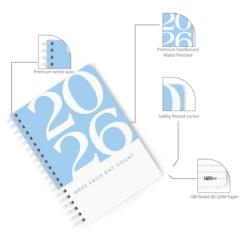 PAPBOO A5 Handy, Hardcover, Hardbound 2026 Diary with Calendar, Easy to Carry White Spiral Wiro Notebook: 80 GSM Paper, Ruled, 188 Pages, Journal, Diary, Gift(Blue)