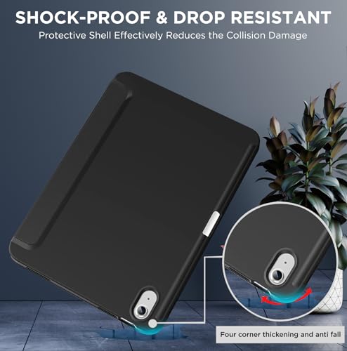 Robustrion Cover for iPad 11th Generation (A16) / 10th Gen Cover Case with [Right Side Pencil Holder] [Auto Sleep Wake] [Soft Back] (2022/2025), Case for iPad 11th 11″/ 10th 10.9″ – Black