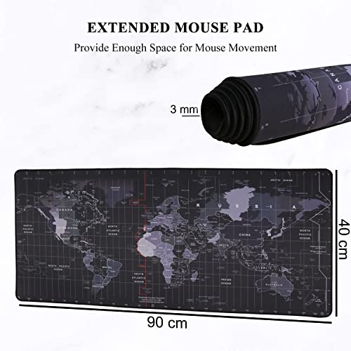 Seagull flight of fashion Large Extended XXL Gaming Mouse Pad with Non-Slip Rubber Base, Stitched Embroidery Edge Mouse Mat for Laptop, Computer and Desk -90 x 40 x 0.3 CM – World Map